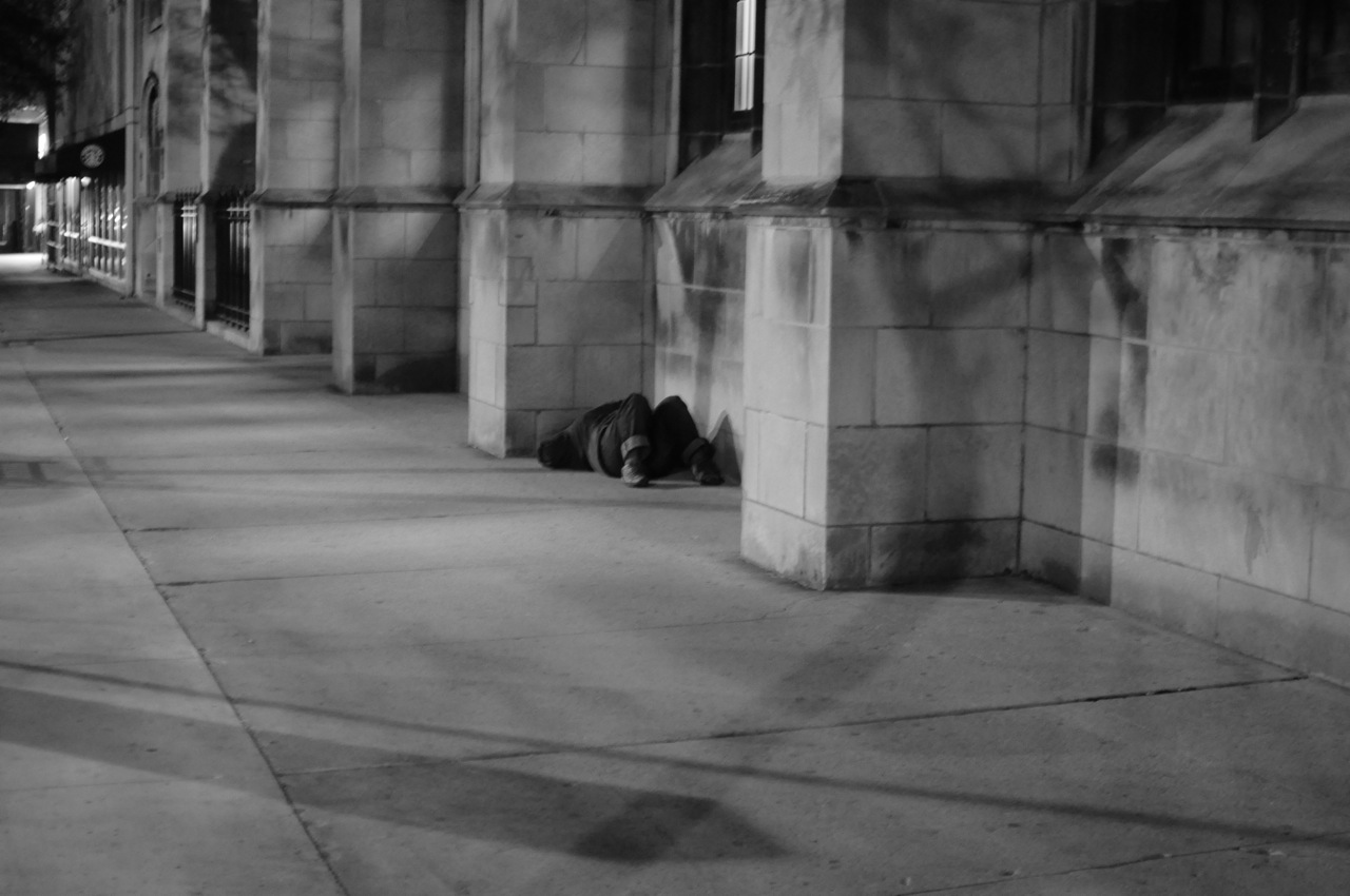 At what point do the intersections of homelessness and addiction cross? This man looked to be about 50. What was he like at 49, 47, 39, 26, 18 and six years old? What must it be like to wake up at the bottom of a lamp post next to a garbage can and wonder what the next move should be.